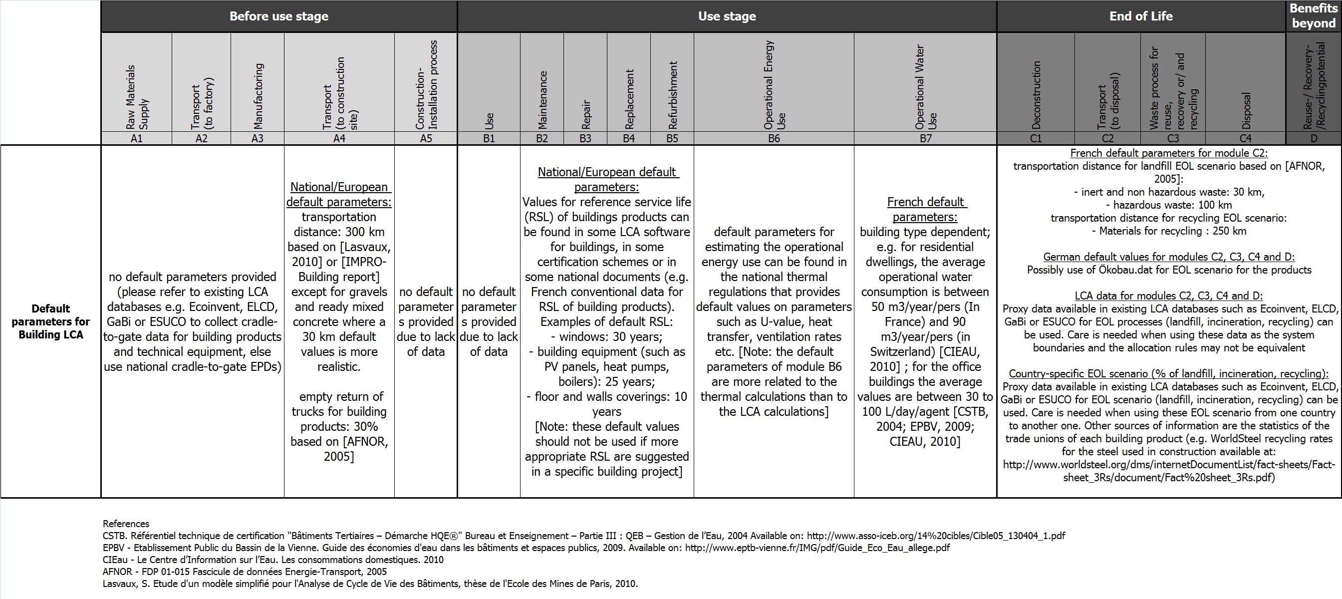 For numerous studies, however, average or default values may be helpful, and have the potential to significantly reduce the effort for data collection, especially if the relevant figures are required, yet are not critical for the study outcome. Also, to gain confidence in one’s study, the practitioner may use such values for cross-reference. For such purposes, a non-comprehensive collection of various default values is provided in this Annex. This collection of values does not claim to be ultimately right, and the practitioner has to decide by himself or herself whether the given values are applicable to the study’s context, and whether utilizing these values will be beneficial for the study.