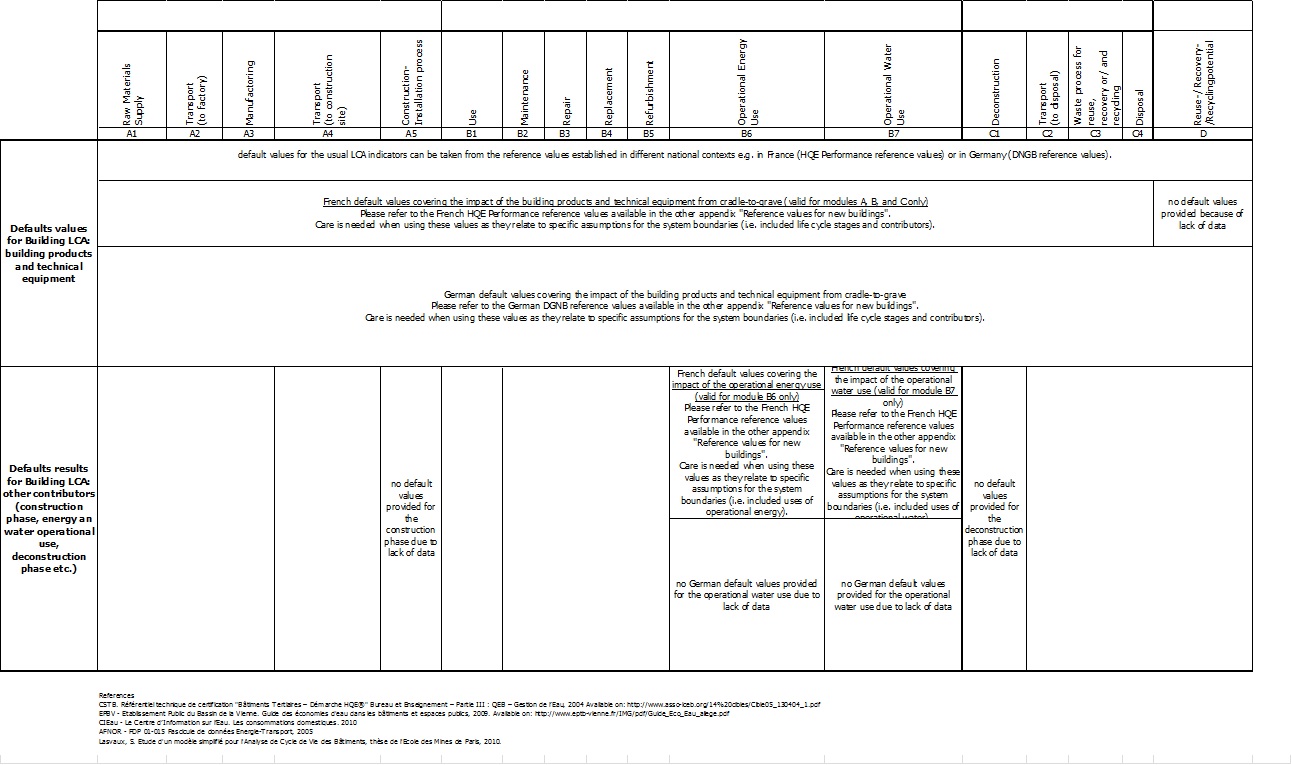 Following a simplified understanding of a building’s life cycle, the reference study period can be seen as the timespan of use, i.e. the duration of services within Module B. Hence the reference study period has a significant impact on the use stage’s contribution to the life cycle impacts. This means that the reference study period influences the relation of impacts from the different life cycle stages, and thus may cause different conclusions to be drawn regarding the importance of a life cycle stage.